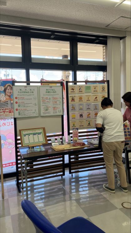 2025年7月15から、糸満支店ロビーにて、【健康意識を高めよう(過度な飲酒、暴飲暴食しない)!】と題したロビー展を開催いたしました。興味を持たれたお客さまが、待ち時間の間にパネルを見たり、血圧測定をしたりと大変好評でした★これを機に支店職員も健康に意識を向けた生活習慣を取り入れるようにしたいと思います!