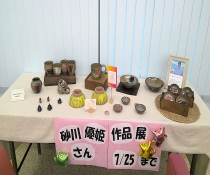 泡瀬支店では、2025年7月15日~7月25日の日程で陶器店を開催いたしました。沖縄の天然記念物の『ヤンバルクイナ』や『ひーじゃー』など沖縄になじみのある動物などが描かれており、かわいい作品にお客さまも癒されておりました♪今後もロビー展を通じて、お客さまとの交流を深めていきたいと思います。
